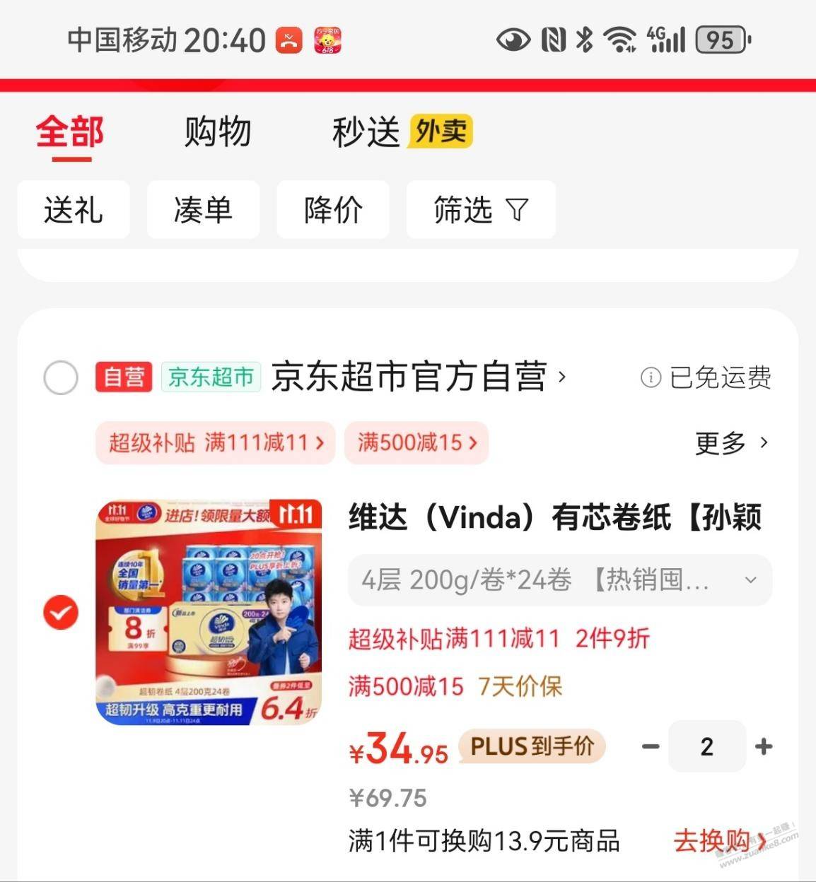 【京东】https://3.cn/2uLbqa-j?jkl=@W8FwV1ilD1@ CA3576 「维达卷纸4层200克*24卷」