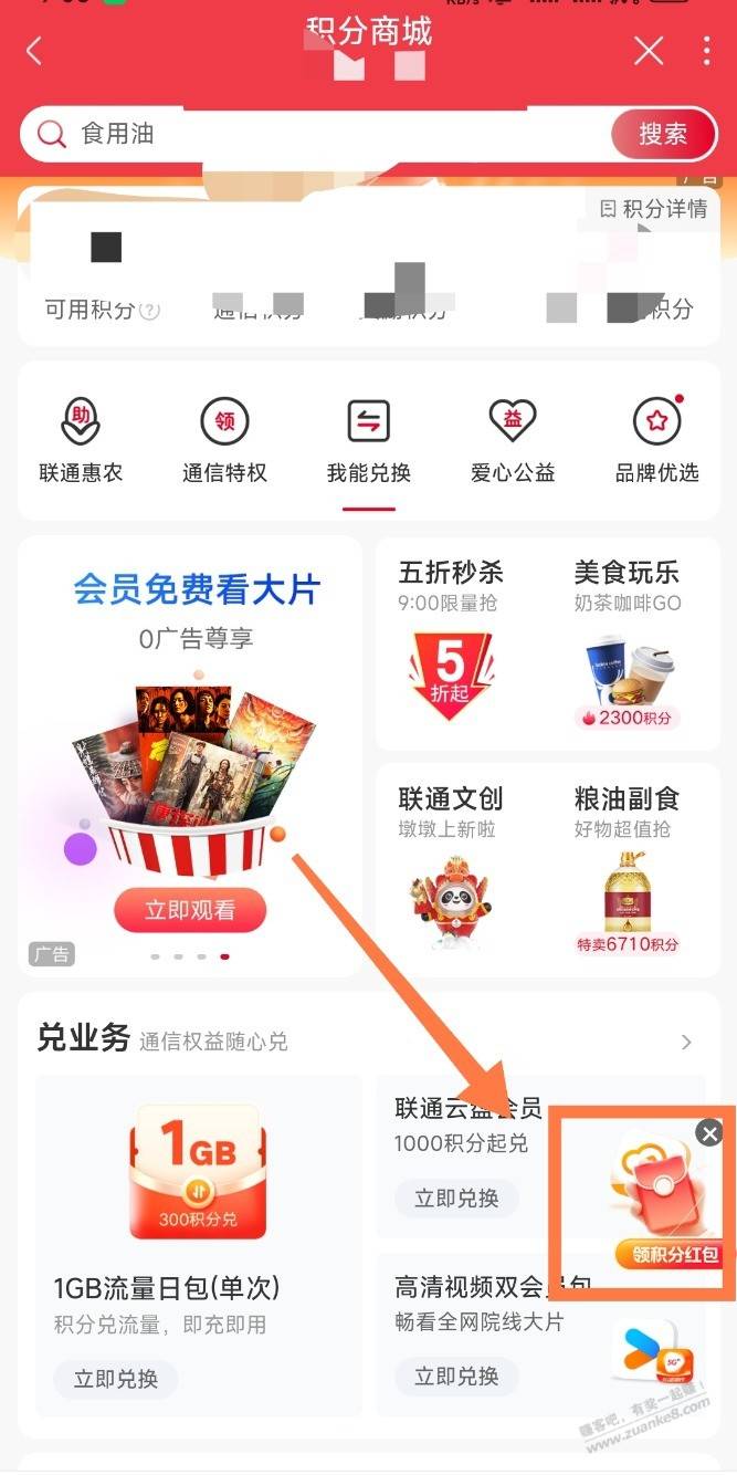 搜索并进入“积分商城”,点击领取积分红包,领取+抽奖,大概率得800积分。
