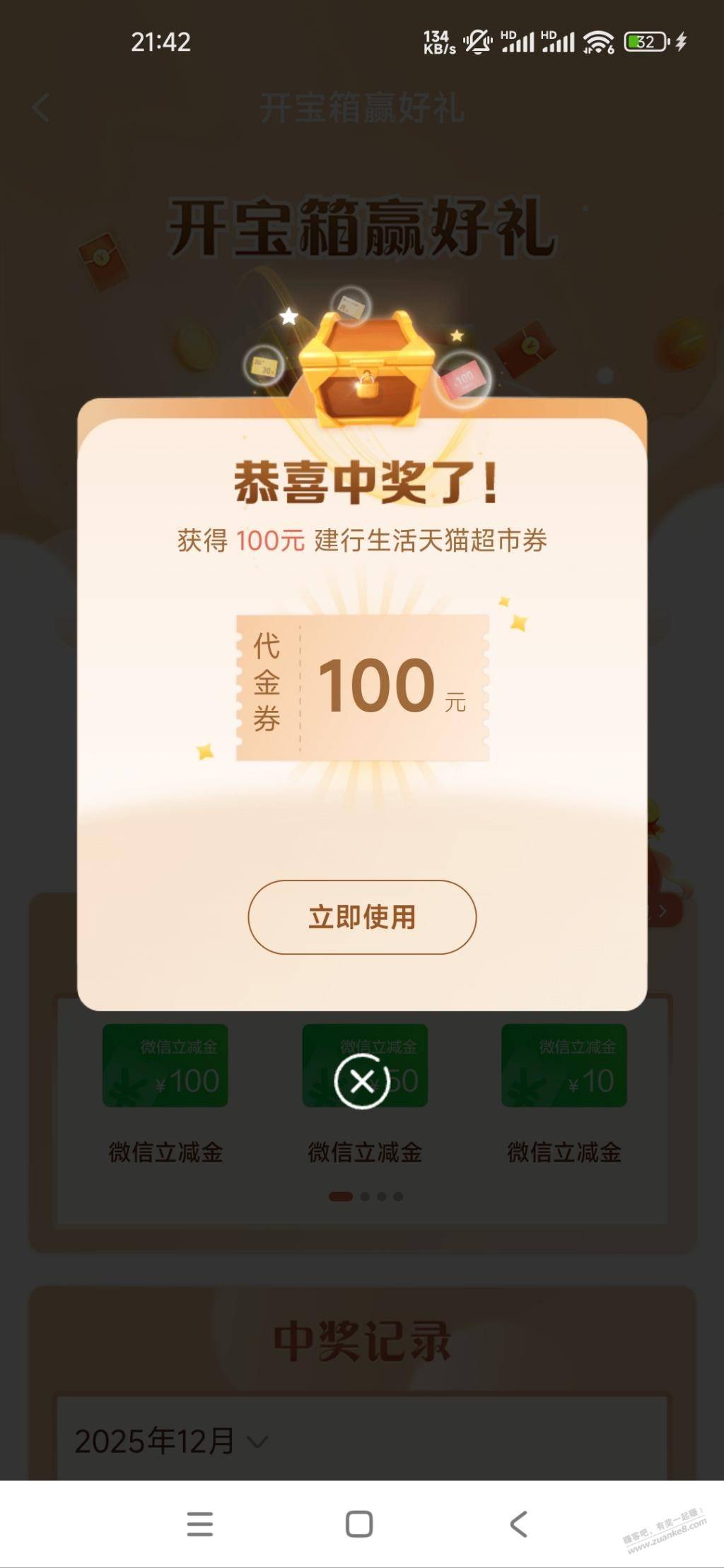 新鲜100券建行天猫
