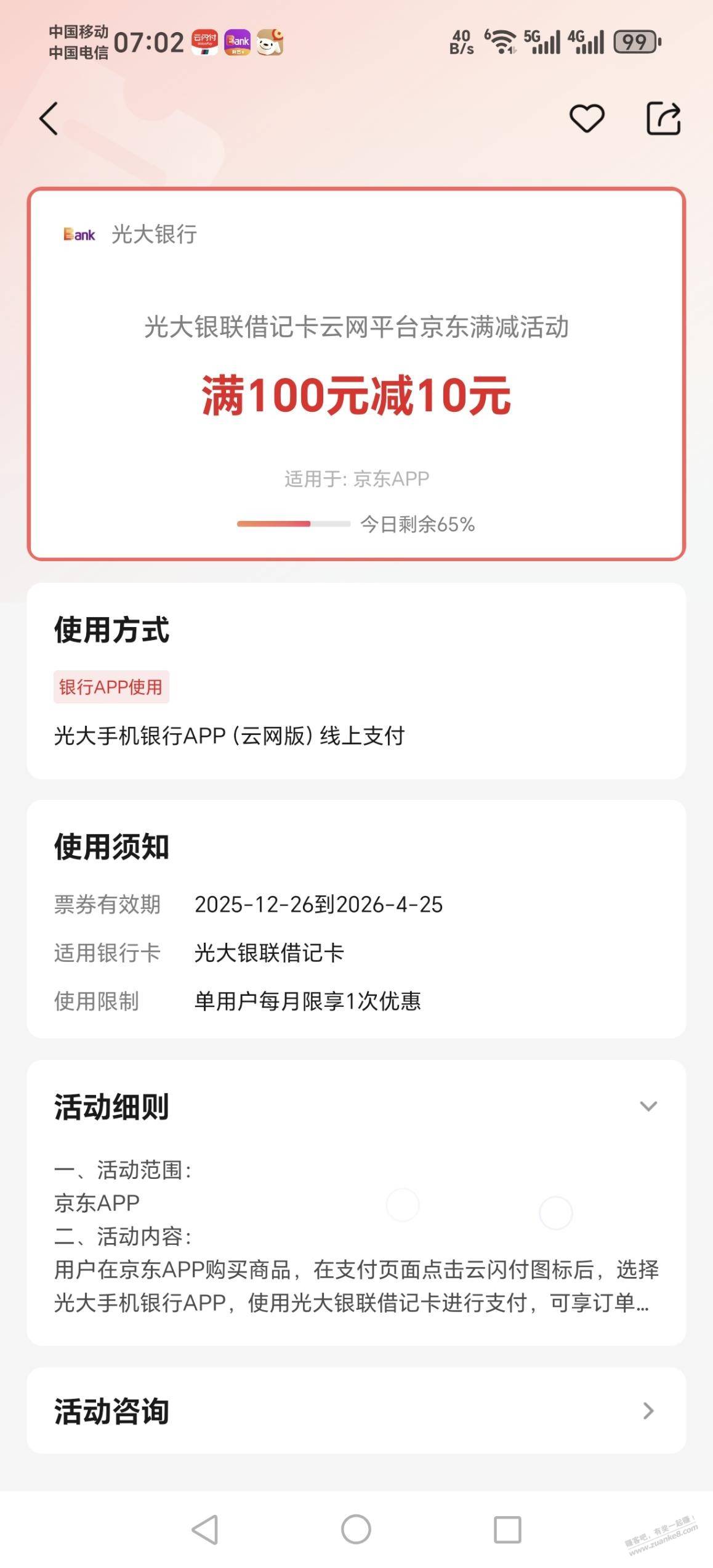 - 2 中国银行8元微信立减金限时领取